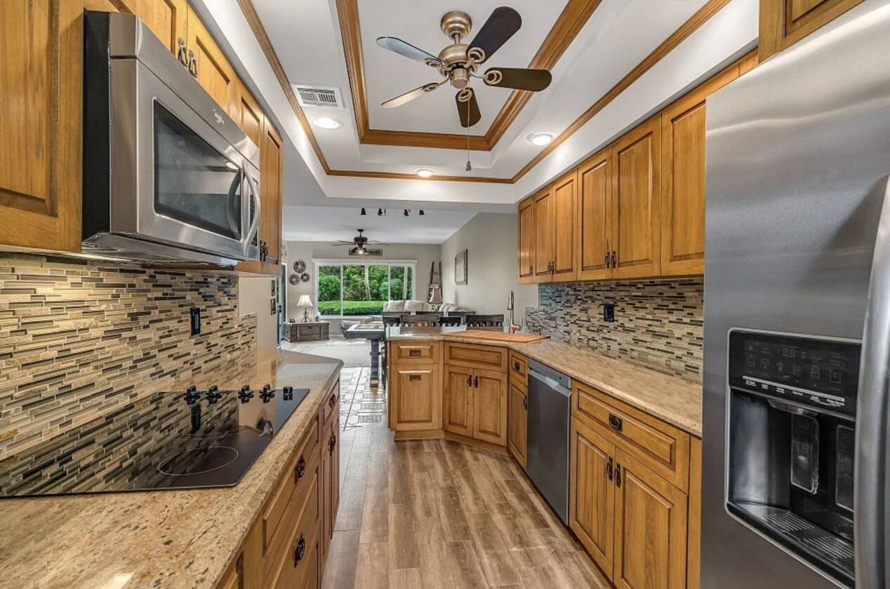 Picture yourself in this rare 3BR/2BA first-floor condo in Reflections on the River, w/Intracoastal views from your Florida room! Enjoy meal prep in the modern kitchen w/cooktop, wall oven, stainless appliances & custom cabinetry accented by granite counters & stylish backsplash. Plus tiled flooring throughout, tiled bathroom showers w/glass doors, built-in wall storage in second bedroom, pull-down shades for living room & enclosed porch, newer water heater, brand-new building roof & personal carport.