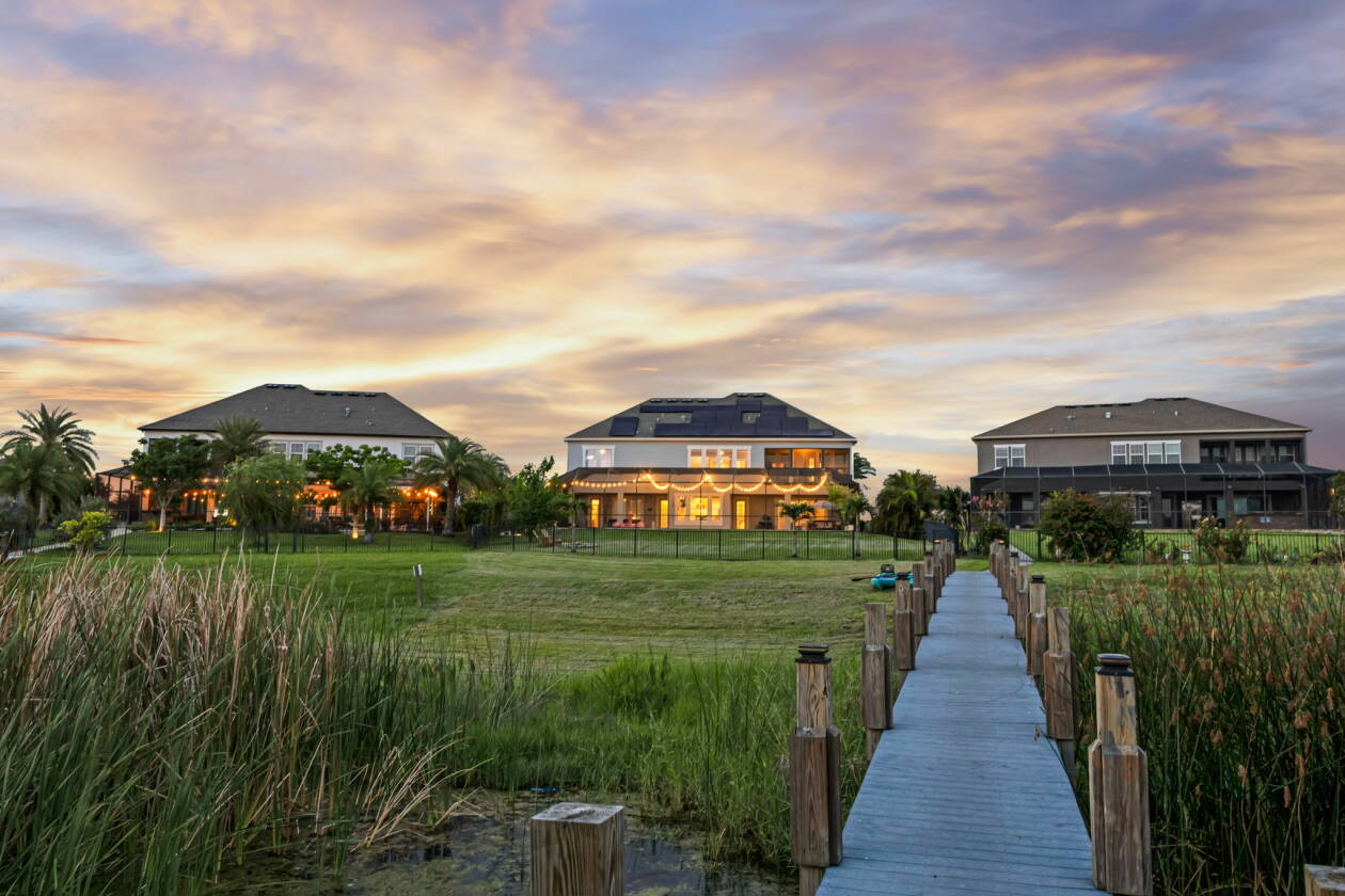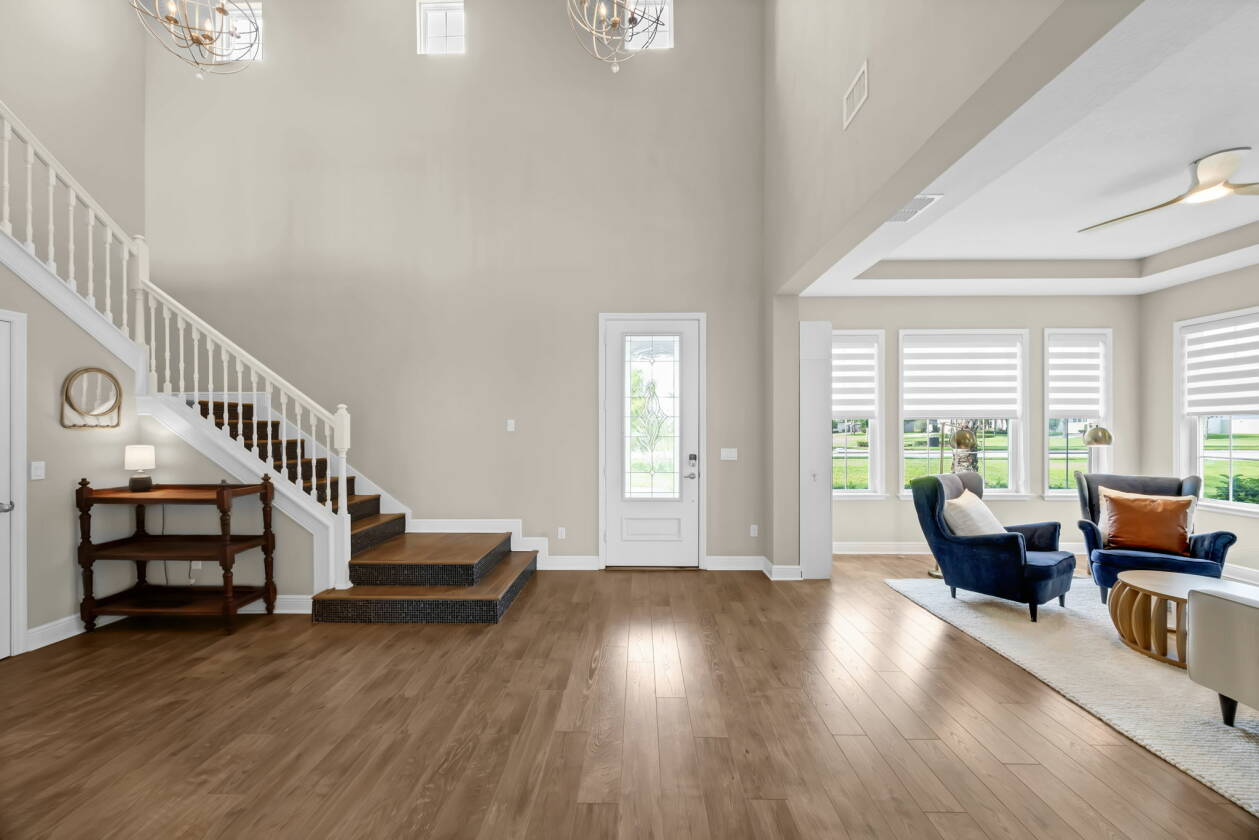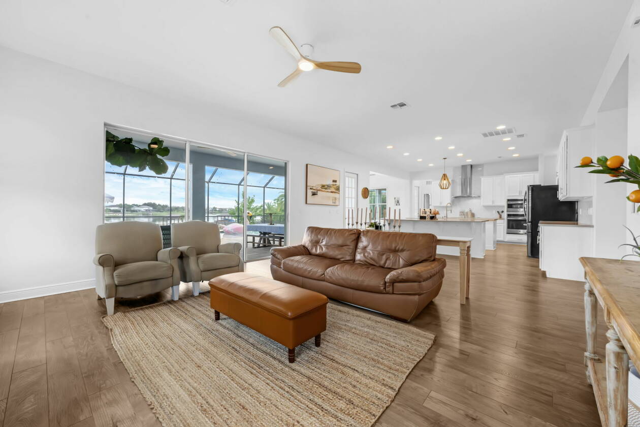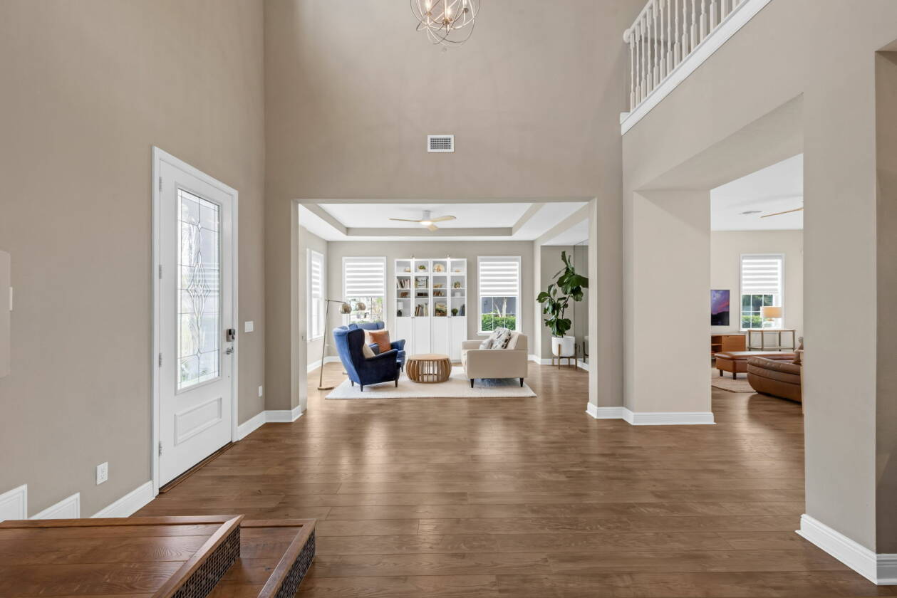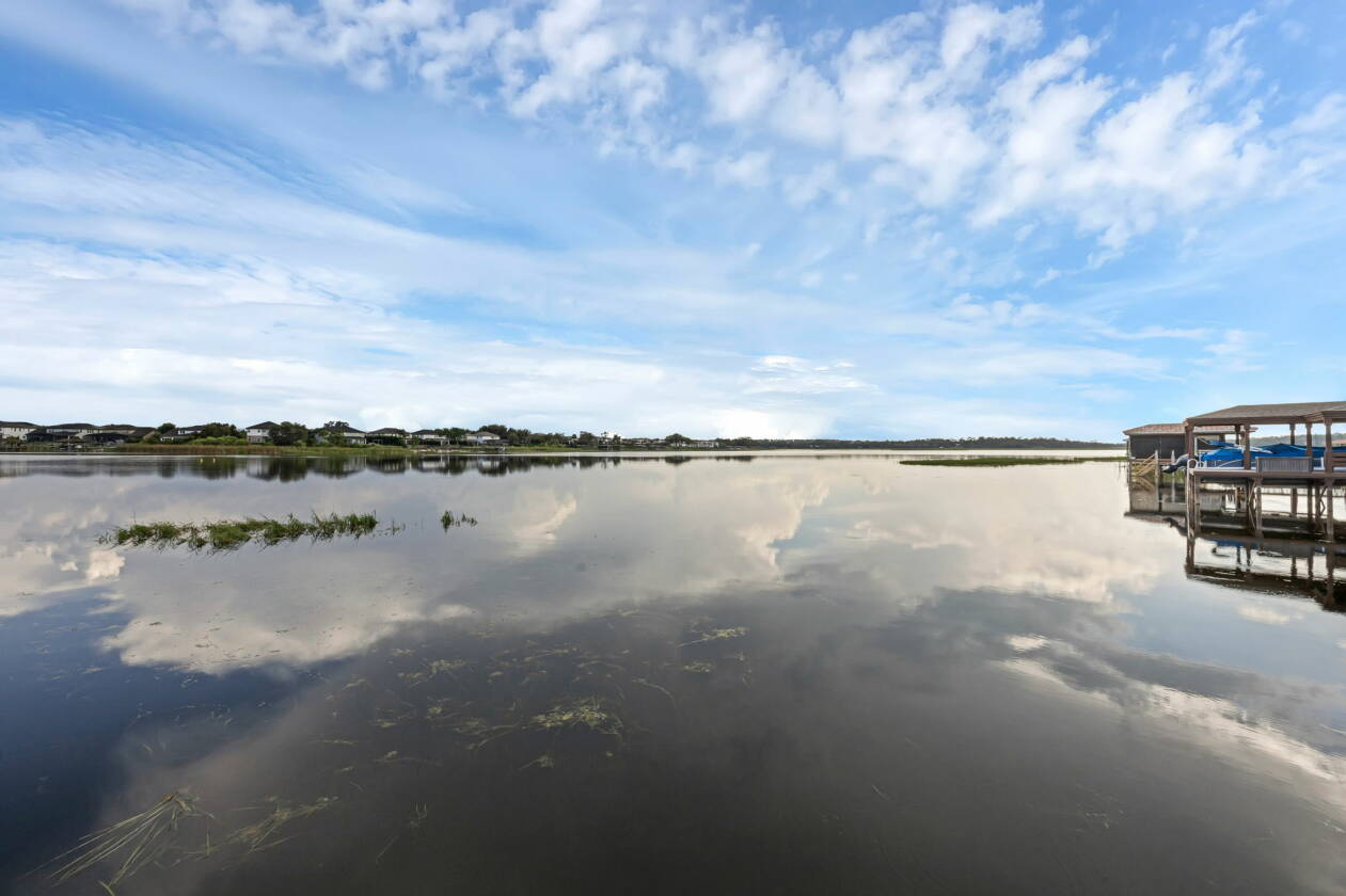 Stunning Lakefront Estate with Pool and Dock in Gated Hickory Hammock. This is a rare opportunity to own a luxury residence on Johns Lake, located in vibrant Winter Garden. This beautifully appointed Lewiston floor plan offers five bedrooms, four full bathrooms, two half baths, and a host of refined upgrades throughout—perfectly blending elegance, comfort, and Florida outdoor living. From the moment you enter, you’re welcomed by a dramatic two-story foyer with 20-foot ceilings, a striking grand staircase, and an elegant powder room. Just off the entryway, a flexible space can serve as a formal dining room, living room, or home office to suit your lifestyle. At the center of the home is an impressive chef’s (super) kitchen, designed for both entertaining and everyday living. It features two large, wood-wrapped islands—one with a sink and one with counter seating—quartz countertops, white cabinetry with custom drawer storage, frosted glass accent doors, a stylish backsplash, and a double oven (including convection). The electric cooktop, walk-in pantry, sunlit dinette, and included appliances make this kitchen as functional as it is beautiful. The open-concept family room flows seamlessly to the outdoors through triple sliding glass doors. Step outside into your private retreat featuring a fully fenced backyard, resort-style saltwater pool with lap lane, 10-foot depth, and sun shelf—all surrounded by lush landscaping. Just beyond, follow a grassy path to your private boat dock, complete with electric, water, 7,500-pound lift, Trex walkway, ladder, and seating area. It's the perfect place to relax and enjoy the breathtaking sunsets and nightly Disney fireworks over Johns Lake. The thoughtful layout includes a first-floor in-law suite with a private entrance, full ensuite bath with walk-in shower, walk-in closet, and screened patio—ideal for guests or multigenerational living. Upstairs, the spacious primary suite offers panoramic lake views through a wall of windows, tray ceilings, and French doors that open to a private balcony overlooking the pool, backyard, and waterfront. The luxurious ensuite bathroom includes two vanities, a garden tub, large walk-in shower, and generous closet space. Three additional upstairs bedrooms include one with a private bath and two that share a Jack-and-Jill bathroom. A large laundry room with lower cabinets and sink adds convenience, while the spacious flex room facing the lake is perfect for a game room, media space, or home office. The home features 10-foot ceilings on the first floor, 9-foot ceilings upstairs, engineered hardwood flooring throughout, smart fans, fresh exterior paint completed in 2025, and a split three-car garage offering excellent storage for recreational gear, vehicles, or water toys. Located within one of Winter Garden’s premier gated communities, residents enjoy access to a resort-style pool, fitness center, clubhouse, tennis and volleyball courts, dog park, playground, fishing pier, and scenic walking trails. Zoned for top-rated schools and ideally situated near Winter Garden Village, downtown Winter Garden, major highways, and just 15 miles from Orlando’s world-class attractions, this exceptional lakefront home truly offers it all. Now available and ready for immediate occupancy—this is your opportunity to enjoy the ultimate Florida lifestyle. Contact the listing agent to schedule your private showing today.