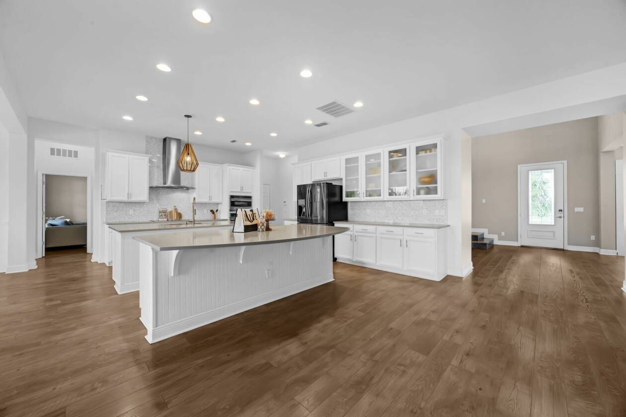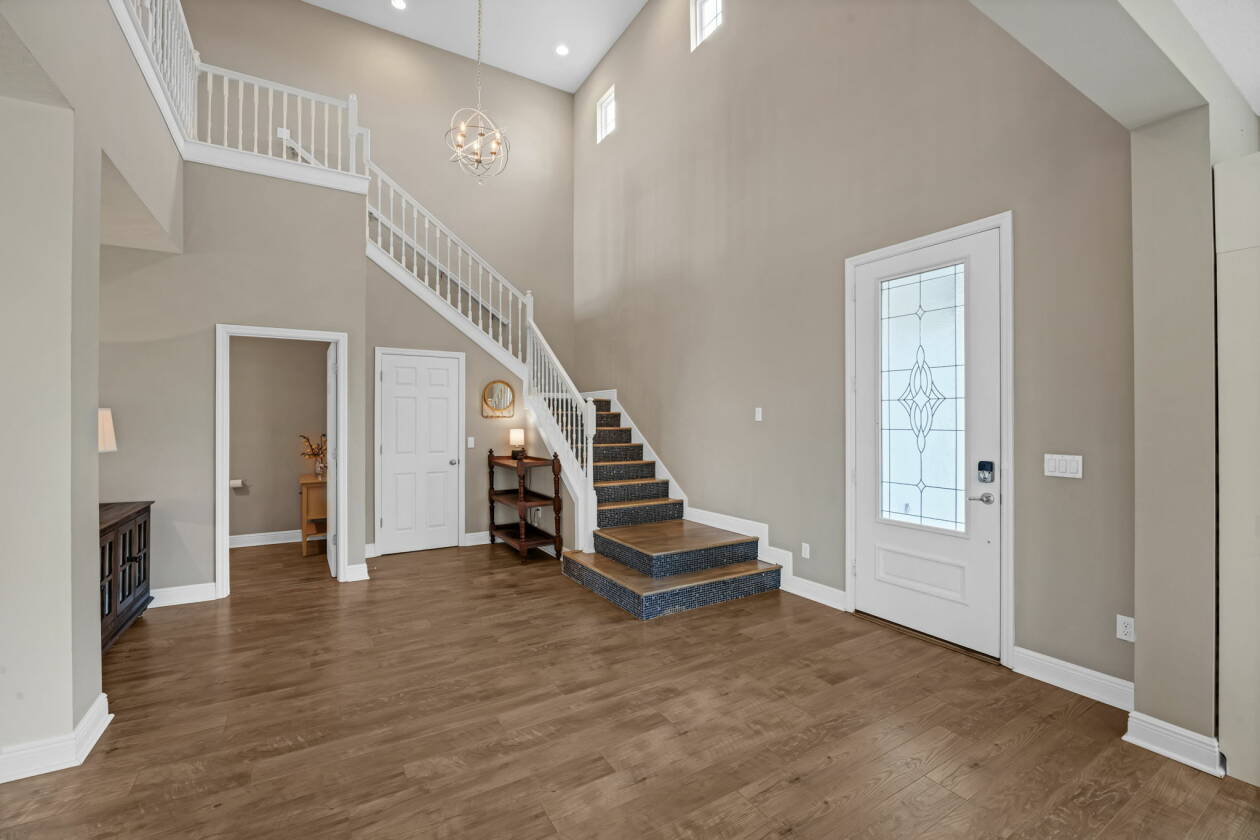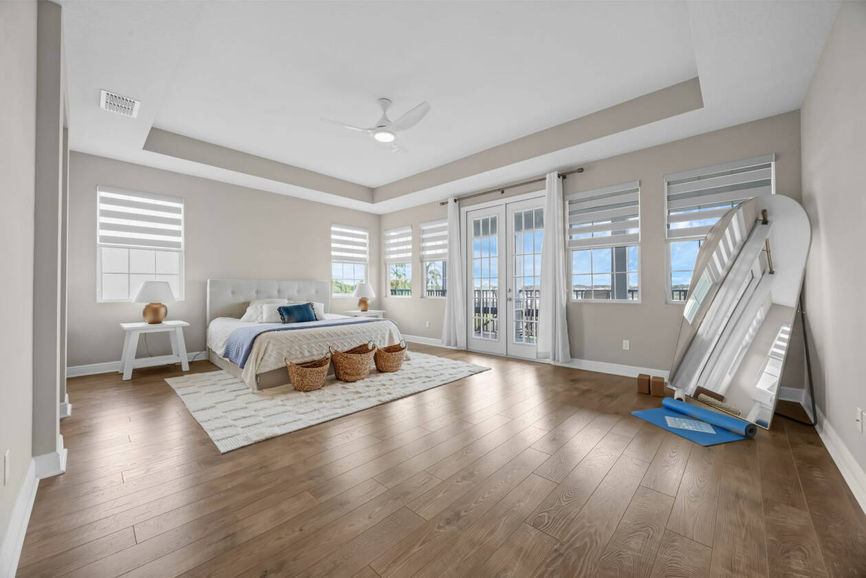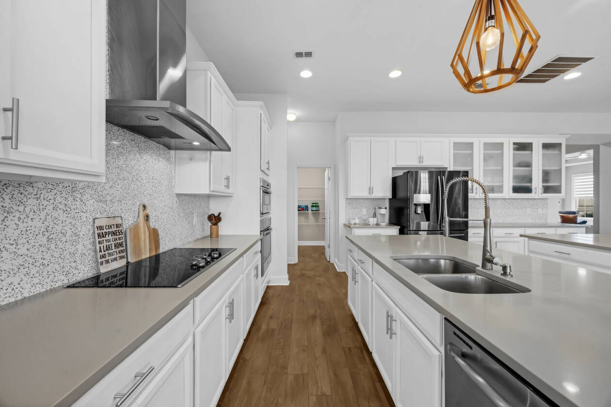 Stunning Lakefront Estate with Pool and Dock in Gated Hickory Hammock. This is a rare opportunity to own a luxury residence on Johns Lake, located in vibrant Winter Garden. This beautifully appointed Lewiston floor plan offers five bedrooms, four full bathrooms, two half baths, and a host of refined upgrades throughout—perfectly blending elegance, comfort, and Florida outdoor living. From the moment you enter, you’re welcomed by a dramatic two-story foyer with 20-foot ceilings, a striking grand staircase, and an elegant powder room. Just off the entryway, a flexible space can serve as a formal dining room, living room, or home office to suit your lifestyle. At the center of the home is an impressive chef’s (super) kitchen, designed for both entertaining and everyday living. It features two large, wood-wrapped islands—one with a sink and one with counter seating—quartz countertops, white cabinetry with custom drawer storage, frosted glass accent doors, a stylish backsplash, and a double oven (including convection). The electric cooktop, walk-in pantry, sunlit dinette, and included appliances make this kitchen as functional as it is beautiful. The open-concept family room flows seamlessly to the outdoors through triple sliding glass doors. Step outside into your private retreat featuring a fully fenced backyard, resort-style saltwater pool with lap lane, 10-foot depth, and sun shelf—all surrounded by lush landscaping. Just beyond, follow a grassy path to your private boat dock, complete with electric, water, 7,500-pound lift, Trex walkway, ladder, and seating area. It's the perfect place to relax and enjoy the breathtaking sunsets and nightly Disney fireworks over Johns Lake. The thoughtful layout includes a first-floor in-law suite with a private entrance, full ensuite bath with walk-in shower, walk-in closet, and screened patio—ideal for guests or multigenerational living. Upstairs, the spacious primary suite offers panoramic lake views through a wall of windows, tray ceilings, and French doors that open to a private balcony overlooking the pool, backyard, and waterfront. The luxurious ensuite bathroom includes two vanities, a garden tub, large walk-in shower, and generous closet space. Three additional upstairs bedrooms include one with a private bath and two that share a Jack-and-Jill bathroom. A large laundry room with lower cabinets and sink adds convenience, while the spacious flex room facing the lake is perfect for a game room, media space, or home office. The home features 10-foot ceilings on the first floor, 9-foot ceilings upstairs, engineered hardwood flooring throughout, smart fans, fresh exterior paint completed in 2025, and a split three-car garage offering excellent storage for recreational gear, vehicles, or water toys. Located within one of Winter Garden’s premier gated communities, residents enjoy access to a resort-style pool, fitness center, clubhouse, tennis and volleyball courts, dog park, playground, fishing pier, and scenic walking trails. Zoned for top-rated schools and ideally situated near Winter Garden Village, downtown Winter Garden, major highways, and just 15 miles from Orlando’s world-class attractions, this exceptional lakefront home truly offers it all. Now available and ready for immediate occupancy—this is your opportunity to enjoy the ultimate Florida lifestyle. Contact the listing agent to schedule your private showing today.