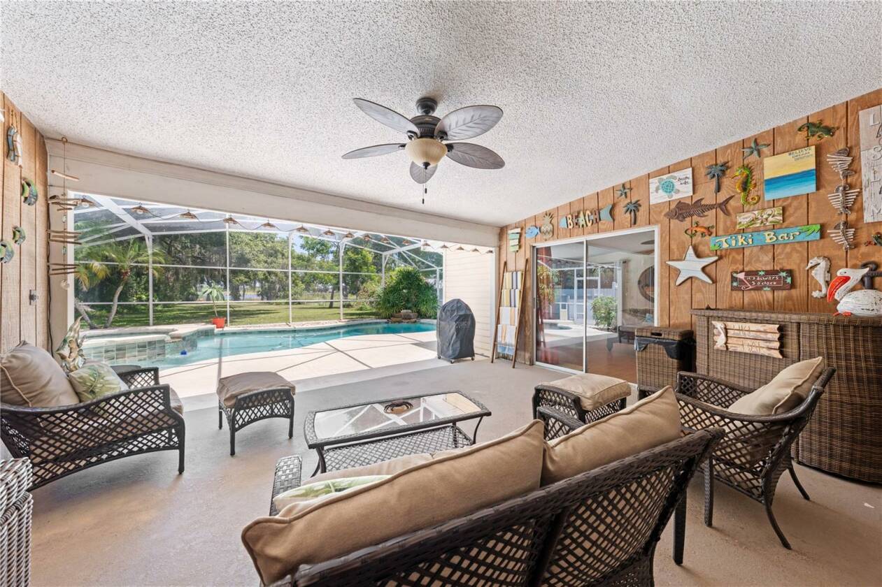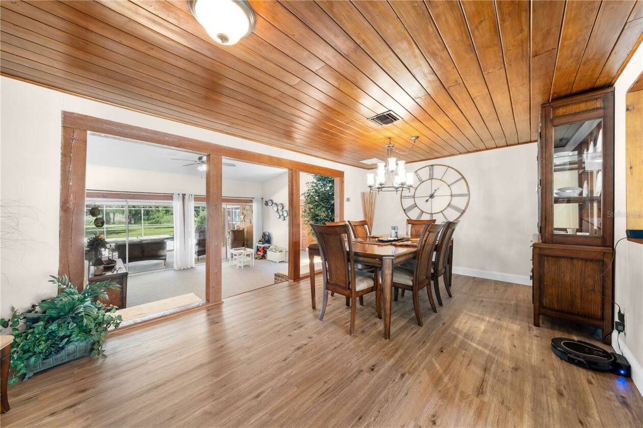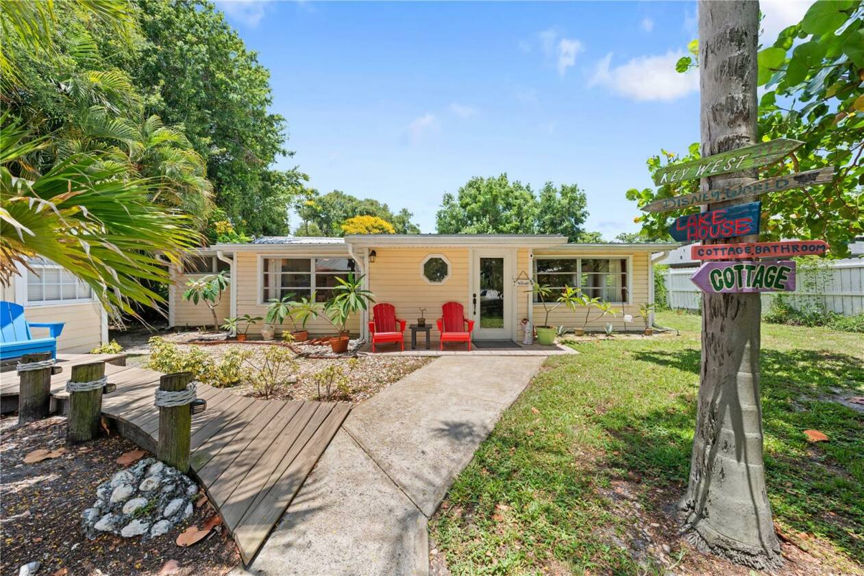 TROPICAL LAKEFRONT OASIS with GUEST COTTAGE on 1.5 +/- acres - No HOA + 2 Large DETACHED GARAGES(3 Bays) and WORKSHOP. Escape to this beautifully updated 4-bedroom, 3-bath single-story home + Cottage situated on a true lakefront lot along the private shores of Fish Lake. The main home features 2,556 sq ft of living space (5,396 sq ft under roof), thoughtfully designed with natural light, soothing colors, and warm finishes throughout. The open-concept layout flows seamlessly for everyday living and entertaining, while the home’s tasteful updates and abundant windows create a serene, welcoming atmosphere. A fully equipped detached guest cottage includes its own kitchen and offers excellent flexibility for multigenerational living, private guest accommodations, or potential rental income. Outdoors, enjoy lush, Key West-inspired landscaping with mature plumeria, tabebuia, bougainvillea, cypress trees, and natural Florida brush. A charming bench swing hangs in the shade, adding to the peaceful, resort-style ambiance. The property also includes two detached garages — one of which could be converted into additional living or recreational space. The seller already has plans for the conversion. A wooden dock structure is already in place and and is ready to be rebuilt — offering incredible potential for enjoying lakefront living at its best. RECENT UPGRADES: Kitchen Remodel with Quartz countertops. The property has 2 AC units both have been updated(2018 &2023) Kitchen Remodel with Quartz countertops. Metal Roof front half & sky lights of Main Home(2019), Metal Roof on front half(2021) RUN BY PROPANE GAS: Kitchen Stove, Kitchen Water Heater & additional Rinnai Water Tankless Water Heater(2020) & Dryer. Exterior Main Electrical Panel and Pole(2021) Pool Heater(2017) Garage Doors(2018) Asphalt Driveway (2020) New Electrical Main Panel Outside & Pole(2021) The south side of Ames Haven is scheduled to become a Cul De Sac. Tucked away on 1.5~ acres, this property offers the perfect blend of privacy, charm, and convenience — with easy access to the Turnpike, shopping, dining, and major commuter routes.