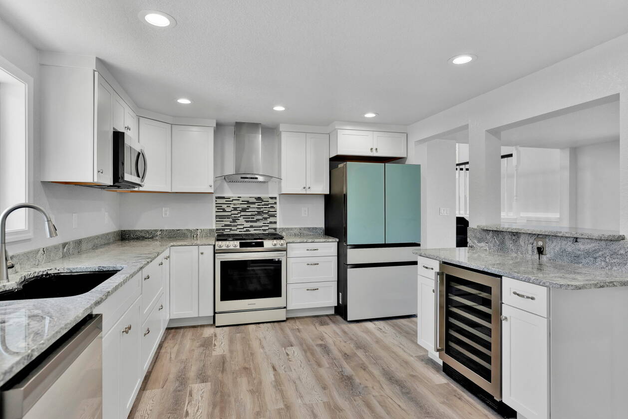 Masterfully remodeled home in the highly sought after neighborhood of South Sandpoint with Community Beach access. Every detail has been though of in this wonderful 4 bedroom, 3bath, 2700 Sqft home with attached 2-car garage. Grand entry with floor to ceiling windows. Entertain in the well equipped kitchen complete with walk in pantry and wine bar! Take in the neighborhood on the deck off the dinning area. Relax and take in the views by the fireplace in the spacious 480sqft living room. Retire to the the master bedroom suite with en-suite bath, walk in closet and it's own laundry area. Gather downstairs in the family-media room. The peaceful lower level is complete with 3 bedrooms, a large bathroom, and additional laundry-utility room. Zonal heating and cooling in nearly every room. Fenced back yard with sod, sprinkler system. All of this and so much more!