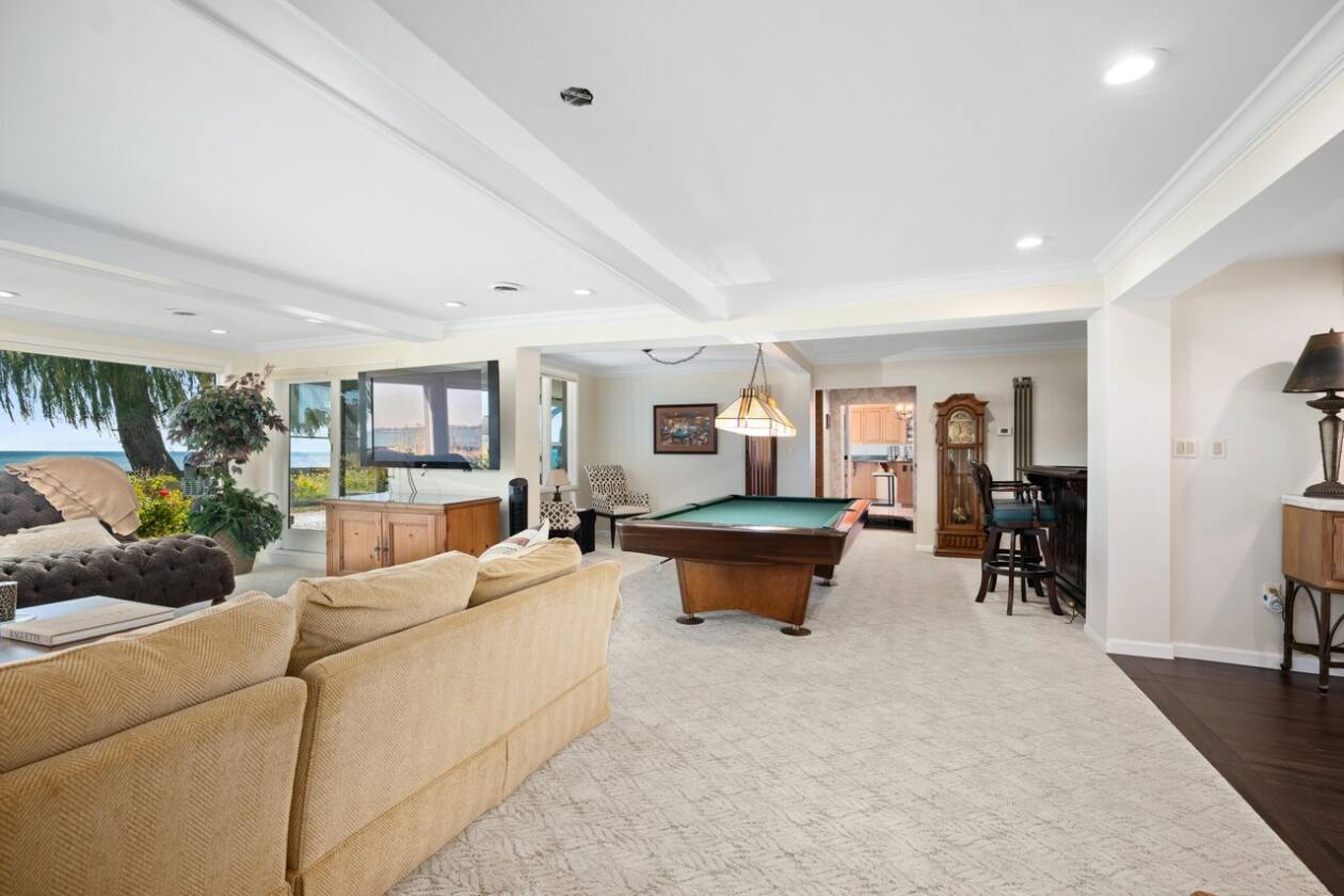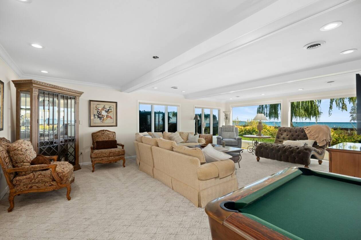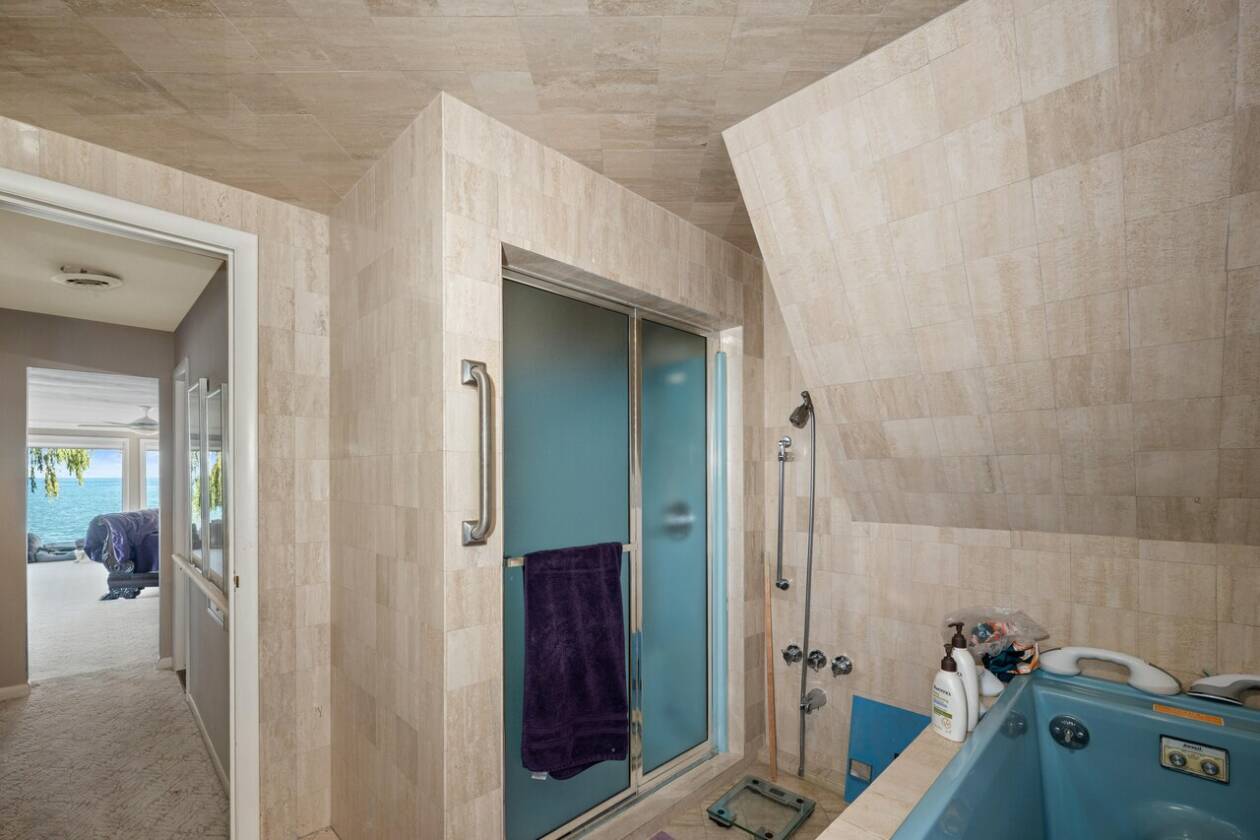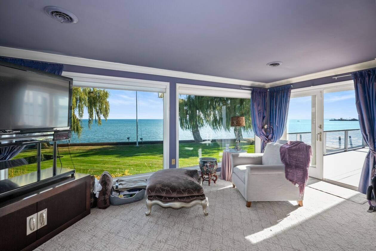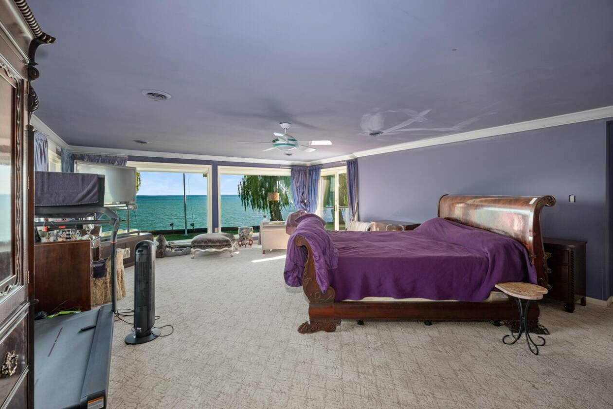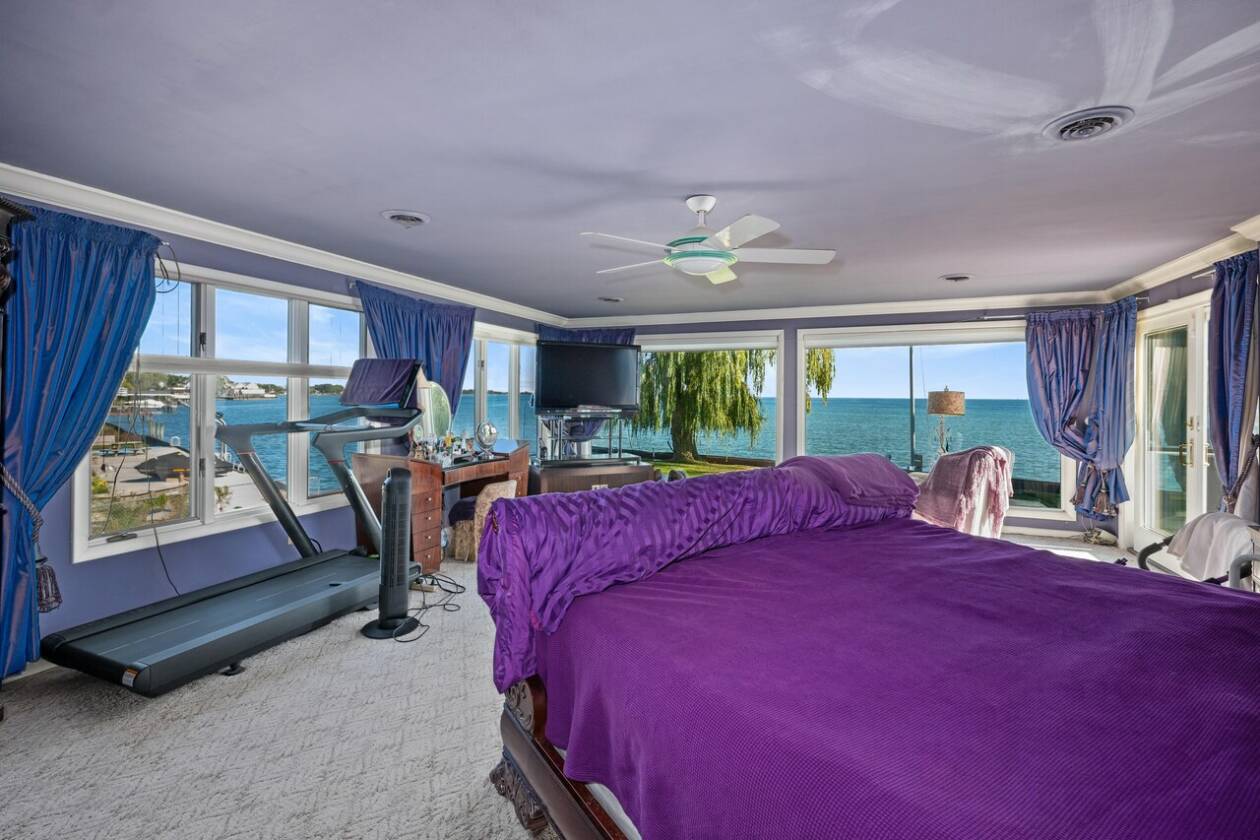 The 26x21 Primary suite boasts floor to ceiling windows for you to enjoy the fabulous sunrises and romantic moonglows. Door wall leads to a 22x9 maintenance free deck with glass knee walls to keep your view pristine. The Primary also features two 1/2 baths plus additional tub and shower area for ultimate in privacy and flexibility. 15x11 cedar lined closet/dressing area will keep your wardrobe fresh.