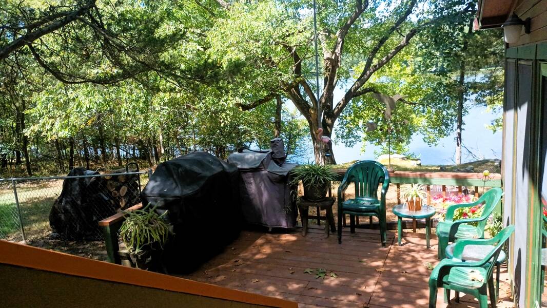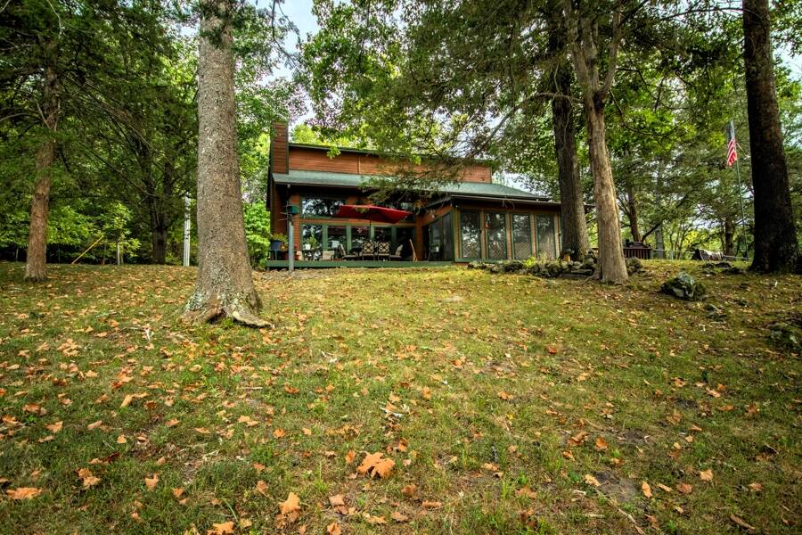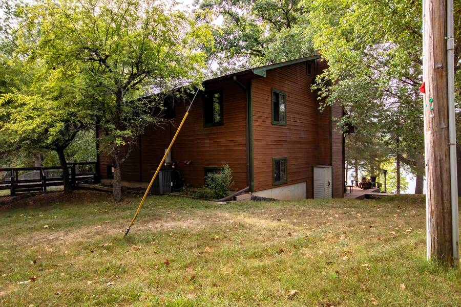 The word "Paradise" is used frequently in real estate listings, especially at the Lake of the Ozarks. This 4 bedroom (2 with en-suites), 3 bath, 2240 sq. ft. Saltbox style home, with soaring ceilings and a wall of windows, truly sits on a "little piece of Paradise". With just under an acre, 165 ft. of lakefront, less than 2 miles from Ha Ha Tonka State Park, you won't find a more quiet, serene, wildlife filled property on the Lake of the Ozarks. A gentle walk down to your private dock and lift, makes boating, canoeing, kayaking, and some of the best fishing on the lake, a breeze. 5 short miles up the road takes you to the "Whistle" on the big Niangua River where you can float all the way down to your property. The house has a 3 seasons room and a loft, with beautiful wood trim. There is a gas fireplace in the living area with a stone hearth. The 2-car garage has a workshop attached, with A/C, heat, and a doggy door. A fenced area is perfect for pets and kids. The house is newly stained, with a 25-year Behr stain. The empty lots around the house will never be built on. Don't miss out; houses out in areas like this just don't come on the market very often. Paradise awaits!