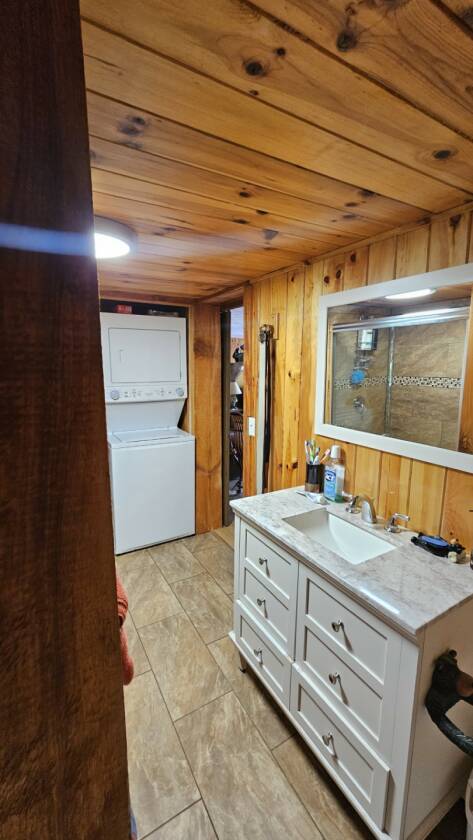 Nestled on the serene banks at the junction of Woodhull Creek and Bear Creek, this charming 3-bedroom, 1-bath double wide manufactured home offers a peaceful retreat for nature lovers and outdoor enthusiasts. Imagine cozy evenings in the spacious living room warmed by the glow of the pellet fireplace. The eat-in kitchen, complete with a stainless steel refrigerator, makes meal prep a breeze, and the convenience of a first-floor washer and dryer simplifies daily living. Wake up to breathtaking water views from the master bedroom, and spend your afternoons relaxing on the deck overlooking the creek. Family gatherings are made memorable with a dedicated fire pit area. A shared driveway ensures easy access, and a 1-stall garage with a workshop provides ample storage for snowmobiles and other equipment. Purchasing this property grants you access to Bear Creek Golf Club, along with over 500 acres for various recreational activities. Enjoy year-round outdoor fun, including ATV riding, snowmobiling, and cross-country skiing. Embrace the tranquility of waterfront living and create lasting memories in this idyllic setting. This is more than a home; it's a lifestyle. In both streams, there are trout fishing at its best and big game and small hunting close by.