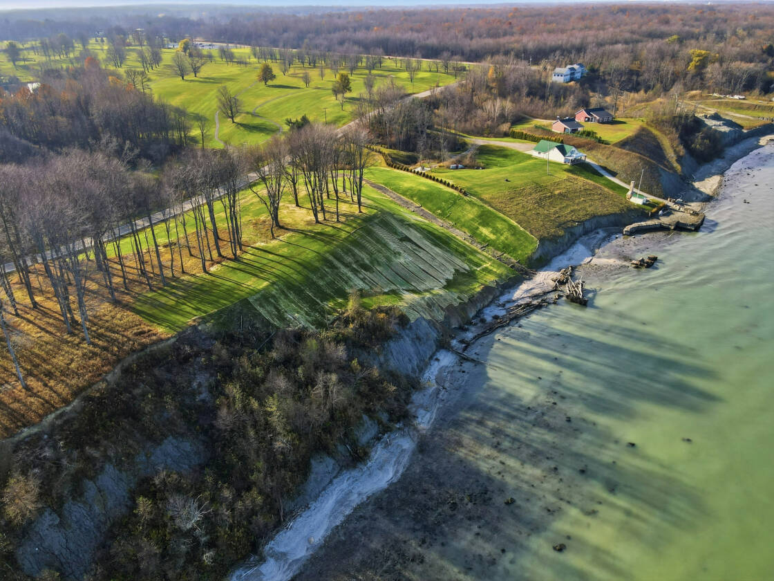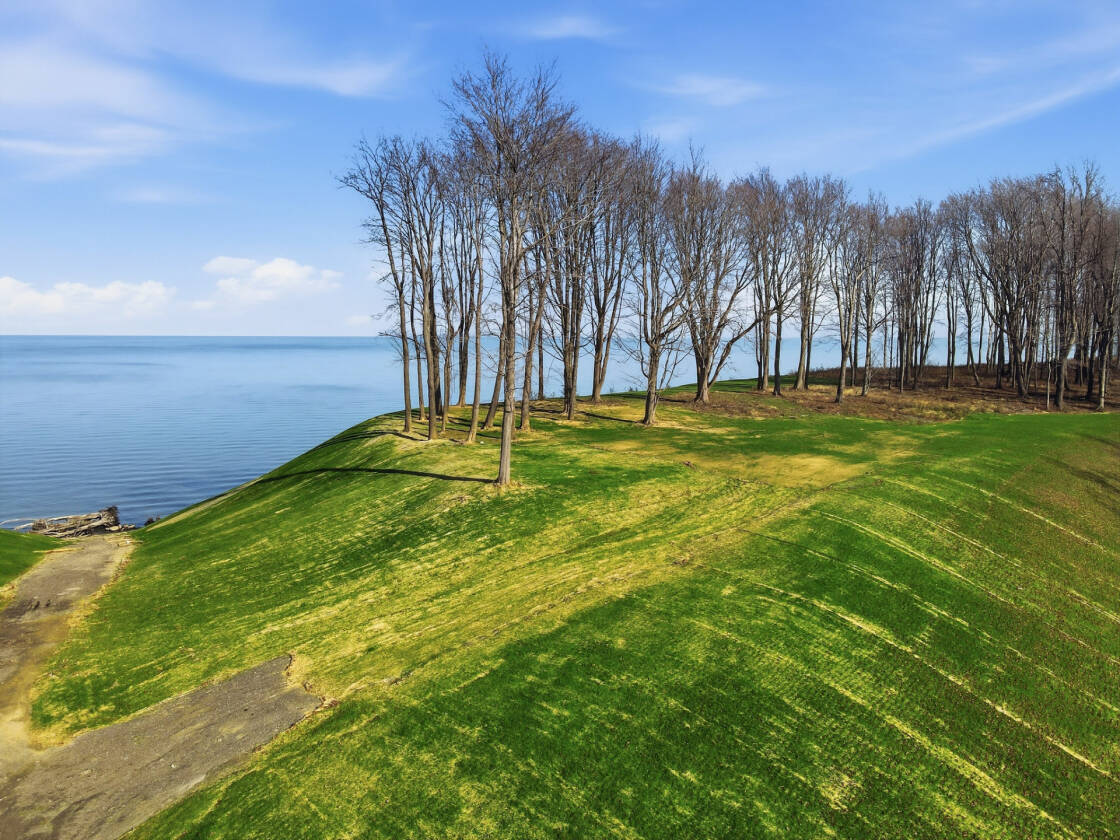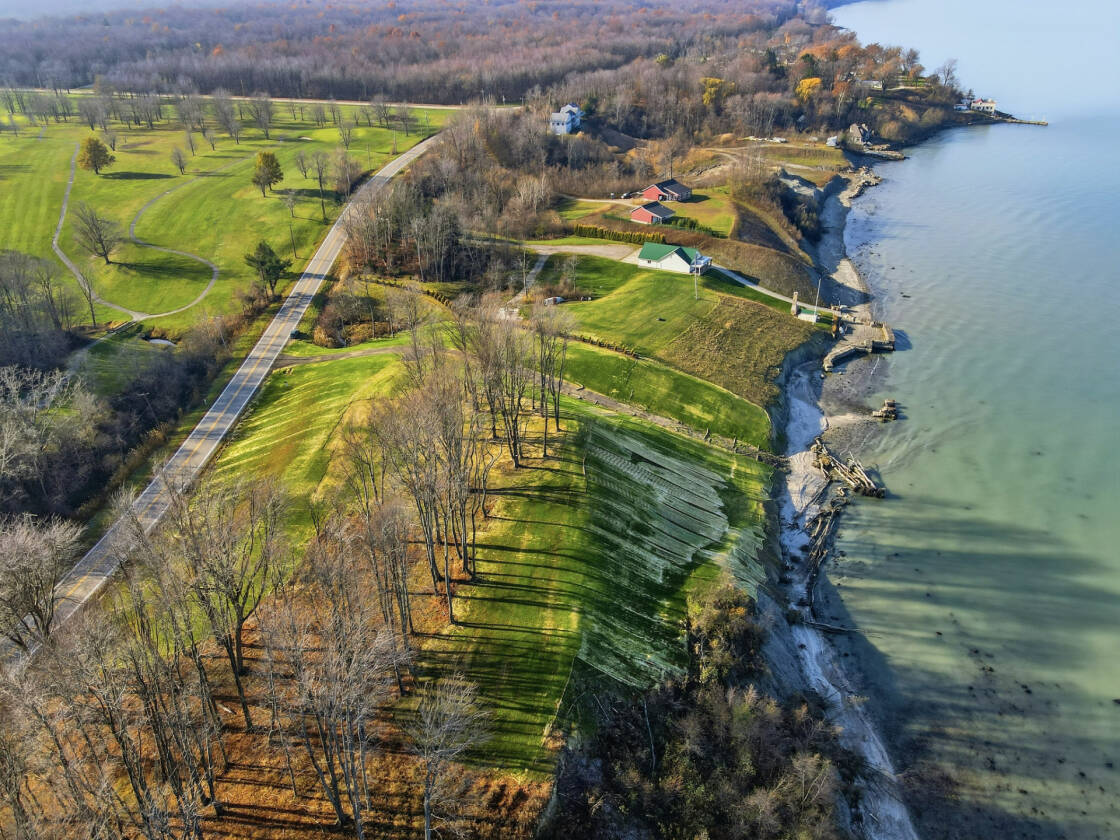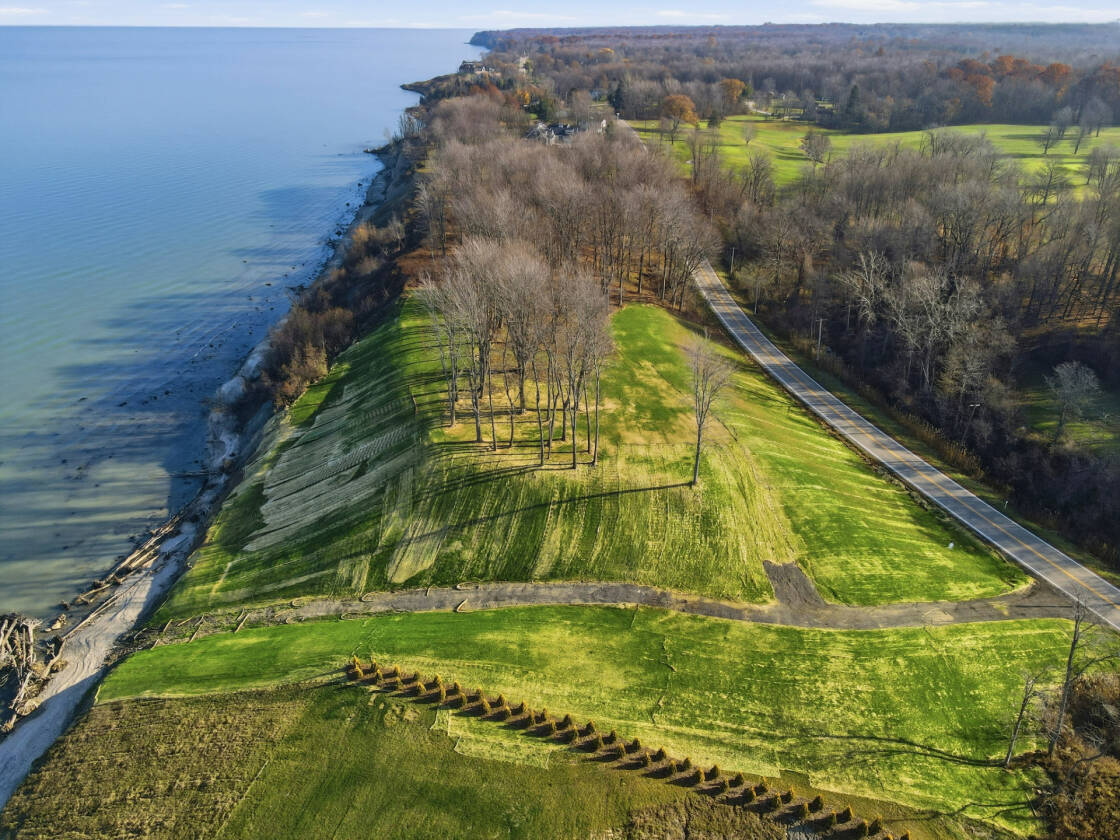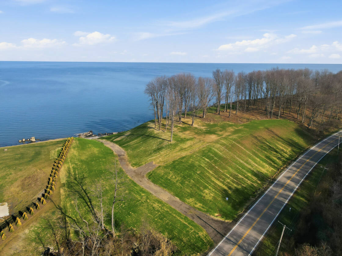 High above the shores of Lake Erie this absolutely remarkable 4.5 acre Lake Erie front building lot is one of the most unique Lakefront properties you'll ever find. With a driveway from the street that leads all the way to the Lake Erie shore you can literally put out your boat or jet ski from your own property while building atop the hill as you overlook Lake Erie on the north and Village Green Golf Course to the south. Bald Eagle perches abound on the property, there is a flat, prepared homesite ready to build upon, approved location for the septic system and driveway base in place. There is no hyperbole or sales fluff in this one - it TRULY is One-of-a-Kind!
