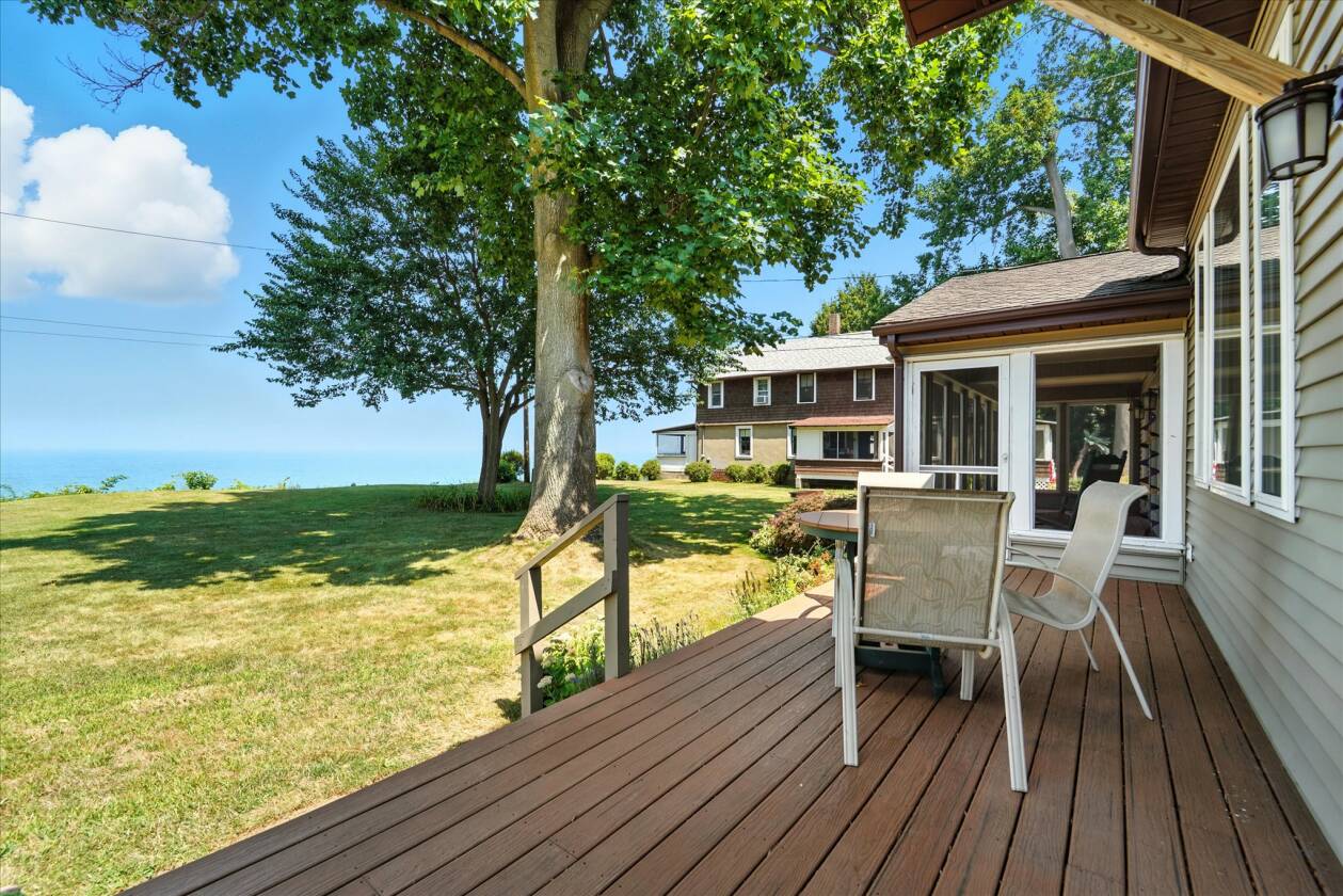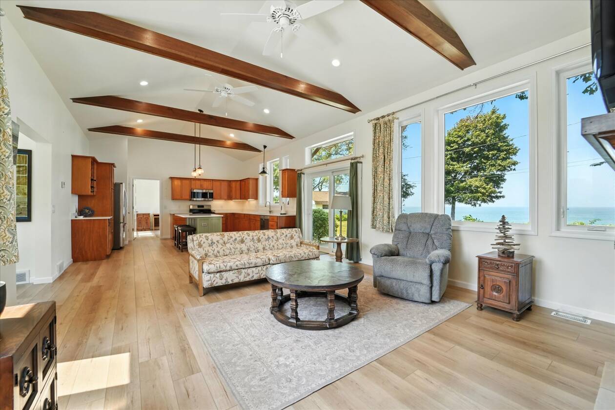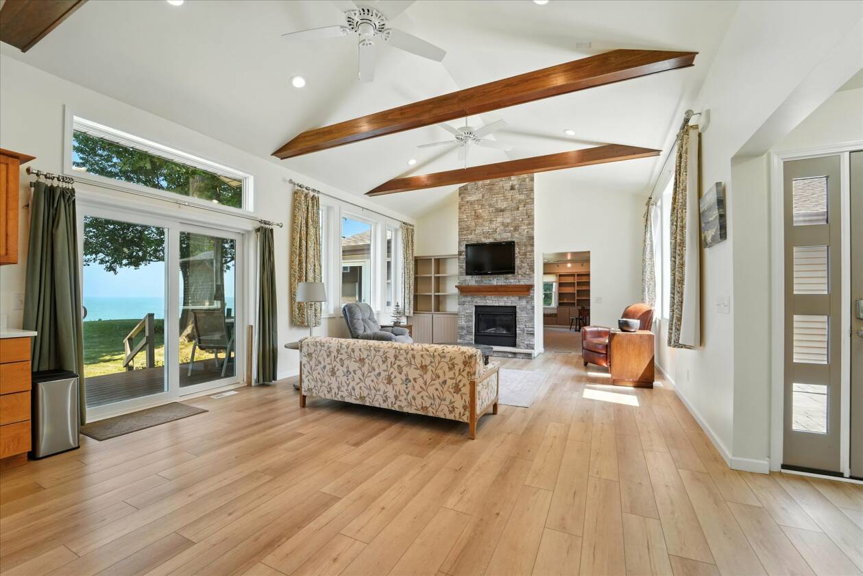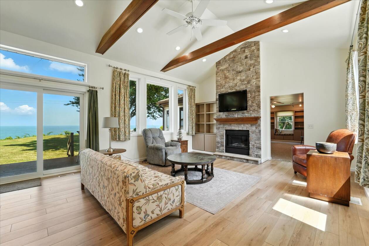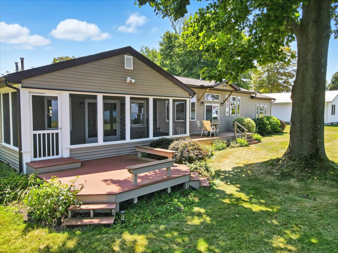 Lake Erie Front Stunner! It'll be easy to fall in love with this remodeled and updated in 2019, 3 bedroom 2 bath 2000+ sq foot ranch set on the beautiful shores of Lake Erie. Breathtaking sunsets can be seen from the kitchen/great room, family room, 3rd bedroom screen porch and composite deck. The discriminating buyer will appreciate the quality of the materials and craftmanship displayed throughout. Quartz countertops, luxury vinyl flooring, center island, full appliance package, LED recessed lighting, gas fireplace with stone stack. The open floor plan and spacious rooms are sure to please! Owner's suite boasts a full private bath with soaking tub and seated walk-in shower. The partial basement is well lit, clean clean clean and adds extra storage along with the concrete crawl space. A/C, 1st floor laundry, 2 car attached garage, 250'+ asphalt driveway and 60 feet to the high bluff of the Lake Erie shore. Set on 1.4 acres and in tip top condition throughout!