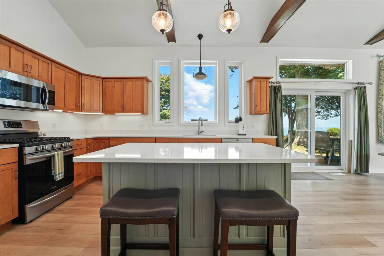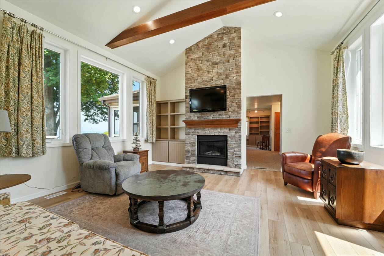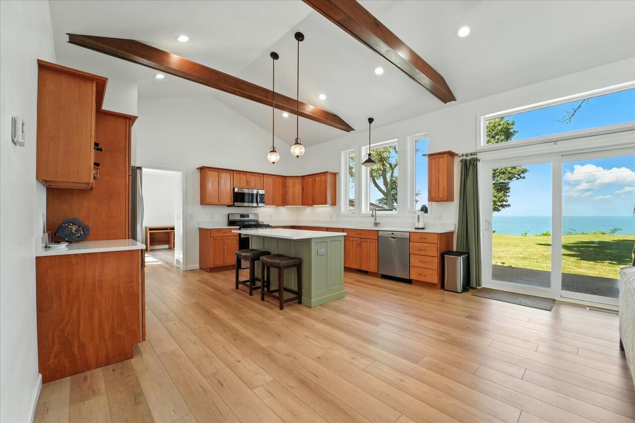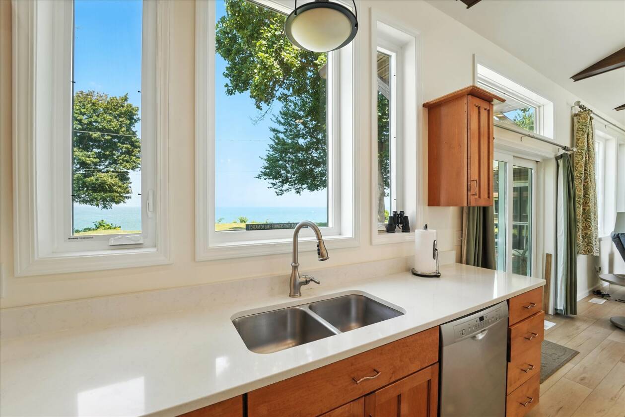 Lake Erie Front Stunner! It'll be easy to fall in love with this remodeled and updated in 2019, 3 bedroom 2 bath 2000+ sq foot ranch set on the beautiful shores of Lake Erie. Breathtaking sunsets can be seen from the kitchen/great room, family room, 3rd bedroom screen porch and composite deck. The discriminating buyer will appreciate the quality of the materials and craftmanship displayed throughout. Quartz countertops, luxury vinyl flooring, center island, full appliance package, LED recessed lighting, gas fireplace with stone stack. The open floor plan and spacious rooms are sure to please! Owner's suite boasts a full private bath with soaking tub and seated walk-in shower. The partial basement is well lit, clean clean clean and adds extra storage along with the concrete crawl space. A/C, 1st floor laundry, 2 car attached garage, 250'+ asphalt driveway and 60 feet to the high bluff of the Lake Erie shore. Set on 1.4 acres and in tip top condition throughout!