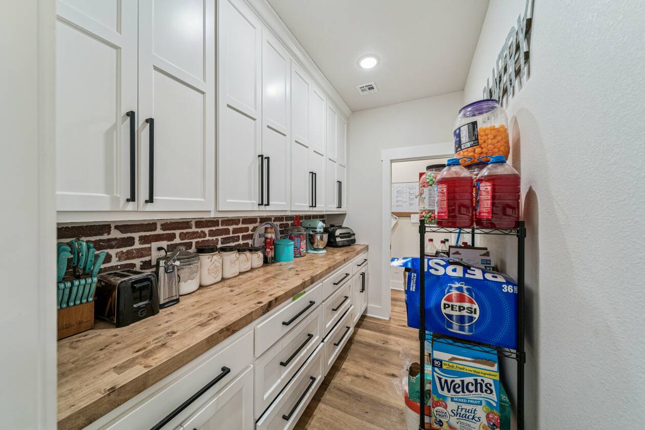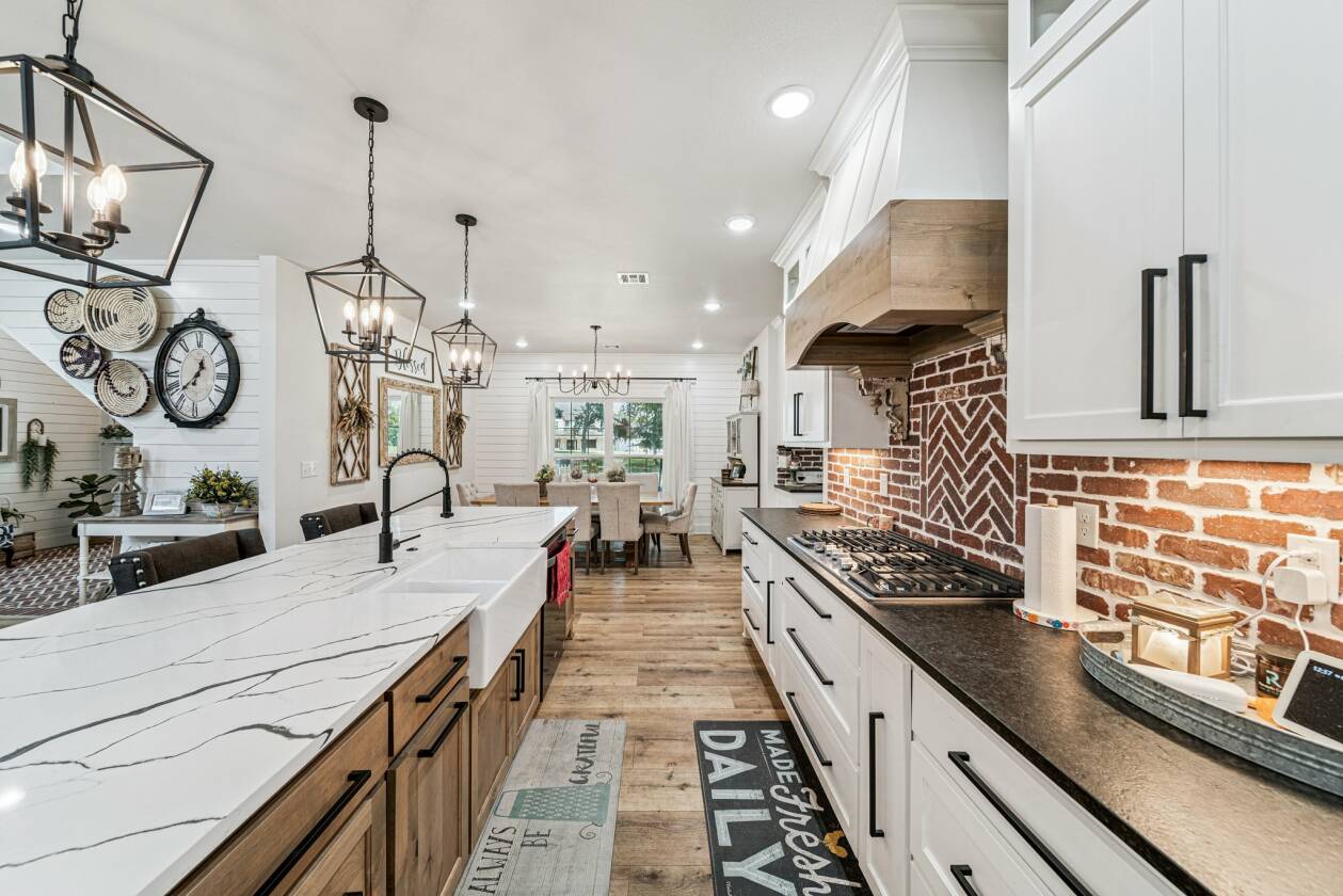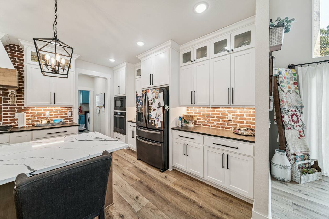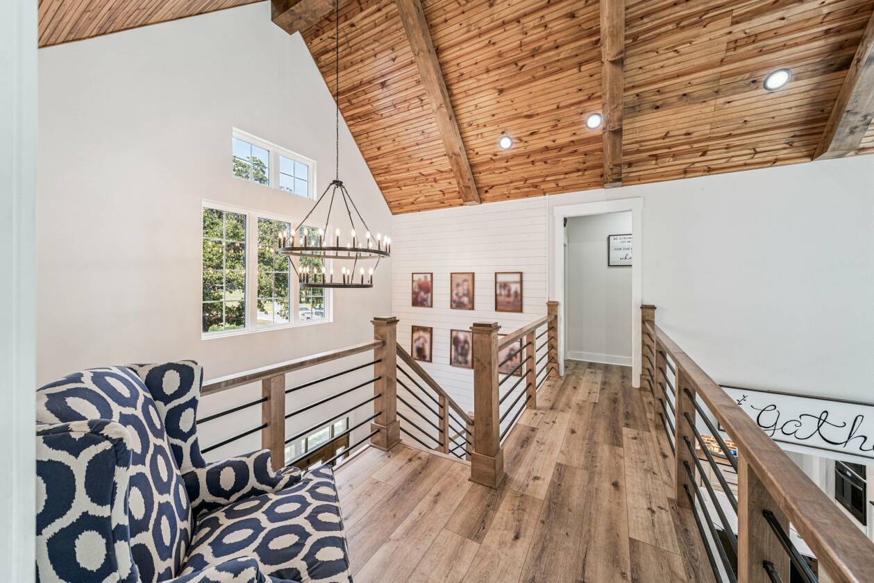 • Stunning brick floors, shiplap walls, and 17’ stained ceilings