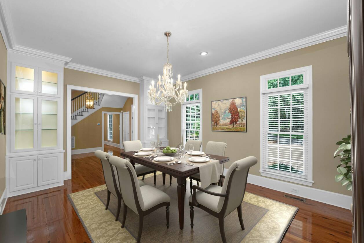 Inside, this home exudes warmth and sophistication. Antique reclaimed heart pine floors anchor the living spaces, complemented by expansive natural light and curated finishes. Every detail whispers luxury, from the travertine and marble selections to the Waterford crystal chandelier. The home is outfitted with premium systems including geothermal heating and air, Rinnai tankless water heaters, and copper exterior lighting that glows beautifully at dusk.
