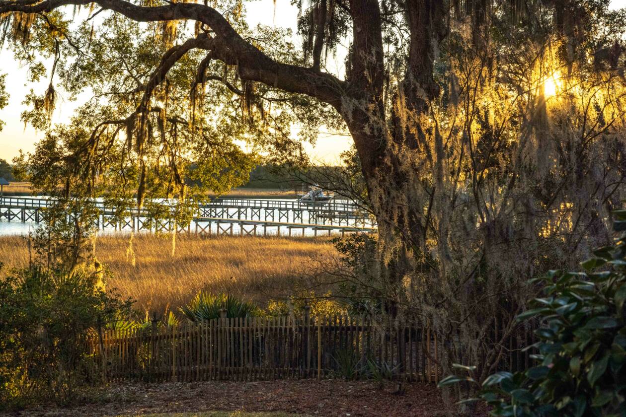 The chef’s kitchen features an enviable collection of Miele, Wolf, and SubZero appliances, ideal for both intimate gatherings and grand entertaining. With a breakfast nook framed by a large riverfront window, you are continuously invited to linger and savor the scenery with your morning coffee. If you desire another space for luxury living, the sunroom, with windows that open to capture river breezes and breathtaking sunsets, offers a beautiful setting to read a book and enjoy the Lowcountry scenery. Expansive covered porches (682 sq ft) extend the living spaces outdoors, framing panoramic water views beneath the shade of centuries-old live oaks.