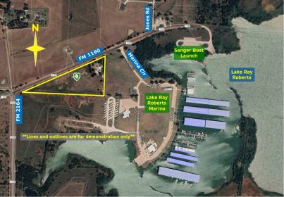 This nearly 8-acre track is finally available and ready for your dream home. Sits half mile west from Lake Ray Roberts boat dock, next to lake marina, four miles east of Sanger and only 15-minute drive to Denton. Perfect location near lake with country feel, but still close to town. Fenced on all sides and has water tap on east end. Currently zoned ag with hay production. Seller will consider dividing into two 4-acre tracks. Survey available. House is not currently habitable. Buyer to verify all zoning and roll back tax requirements.