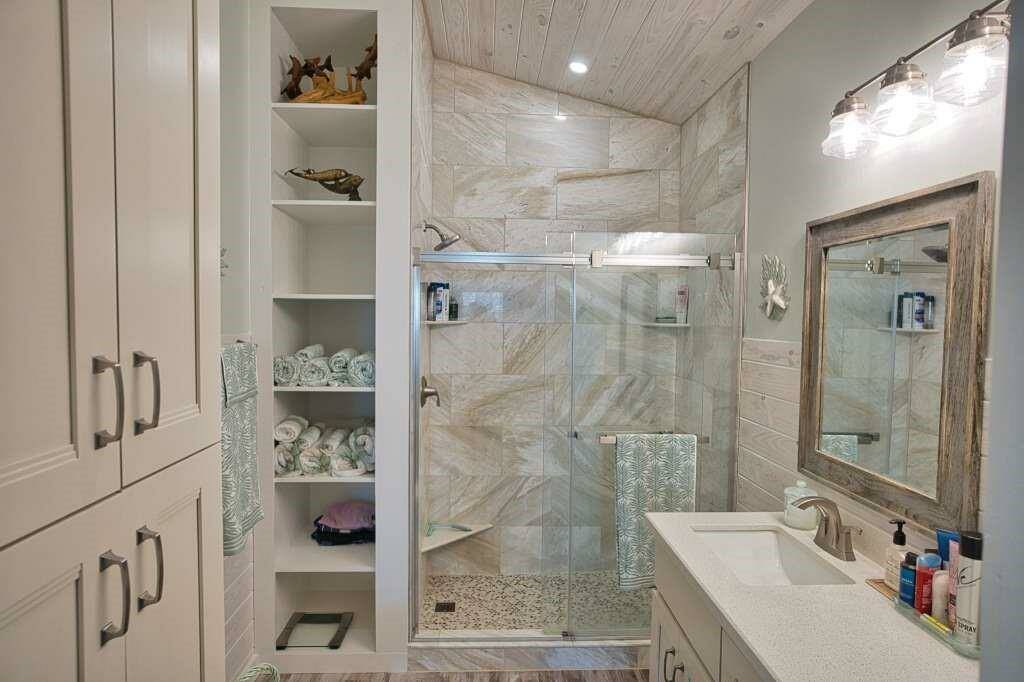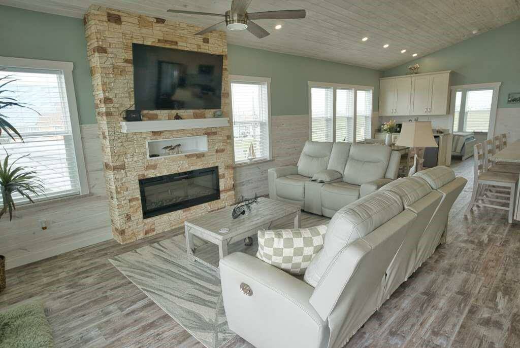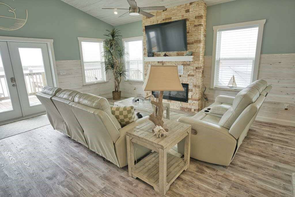 This fully furnished stunning home Boasts 3 Bedrooms and 2 1/2 Baths, Boat House with Lift, Coverd Cleaning station, Crow's nest and Cargo Lift!! The attention to detail of this home offers a wonderful open concept throughout. Vaulted Pine Ceilings and wainscoting. This Model like home is tastefully decorated and very well maintained. The open concept features a LARGE GEORGIOUS QUARTZ ISLAND WITH AMPLE COUNTER SPACE TO MATCH!