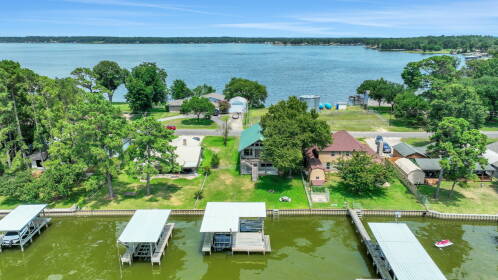 Enjoy stunning lake views from this waterfront home in the highly desirable Indian Hills subdivision. The main living area is thoughtfully situated on the second floor to maximize elevated views of Lake Livingston. The open-concept living, kitchen and dining space features soaring cathedral wood-beamed ceilings that create an inviting and spacious atmosphere. A generous breakfast bar offers ample space for serving or casual dining. Off the main living area are two comfortable bedrooms, each with its own ensuite bathroom, plus an upstairs bunkroom/loft. Downstairs, the lake side portion of the home has been enclosed to add an additional 500 sf (approx) of versatile living space. This large room, complete with a full bathroom, closet and sink/fridge/bar area, can serve as a game room or an additional third bedroom. Step outside to your private boathouse on open water - ideal for boating, fishing, or simply relaxing by the lake. The two car garage provides room for vehicles or storage.