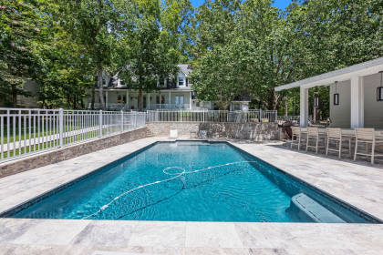 Escape to this private waterfront oasis boasting a beautifully designed main home, swimming pool and guest house. Situated on three lots with 170 feet of waterfront, this getaway has a total of 6 bedrooms, 4.5 baths and is the perfect spot to congregate family and friends. An extensive renovation was completed in 2016 with interior designed by L Pearson Design of Houston. The open concept design and tasteful décor seamlessly blends the living, dining, and kitchen spaces allowing for effortless flow and interaction. The well-appointed kitchen is a chef's dream, featuring ample storage/prep space and a large center island that is everyone’s favorite gathering spot. There are many outdoor spaces to enjoy the serene setting including the inviting Gunite pool added in 2016, perfect for a summer day and the outdoor kitchen for entertaining al fresco. The covered deck off the guest house provides a shaded retreat during sunny days or snuggle by the fireplace on cool evenings.