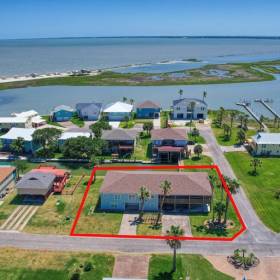 Stunning one of a kind completely renovated waterfront home, sits on 2 corner lots on a protected canal overlooking Aransas Bay with breathtaking sunset views. This 5 bedroom, 5 bathroom, 4348 sq ft home offers open concept, chefs kitchen, wrap around porches, large game room and a separate bungalow with private living, kitchen, bedroom and full bath you could rent our separate long term. Plenty of room for a pool and to add a boatlift. Lots of room for parking, and also place to park a golf cart. Fishing and duck hunting just a short boat ride away. Restaurants and shopping just a 10 min drive away. Furnishings negotiable. "Live your Beach Life" right here in Rockport!