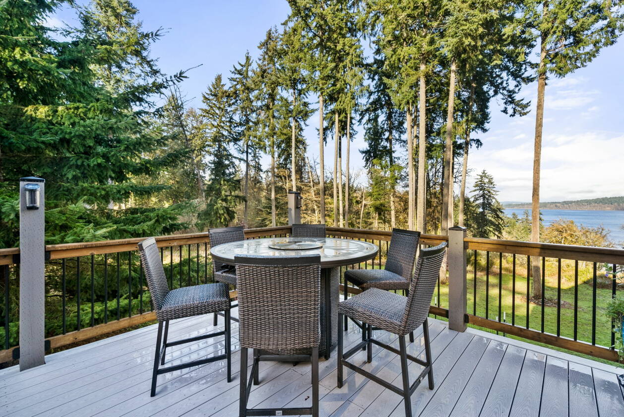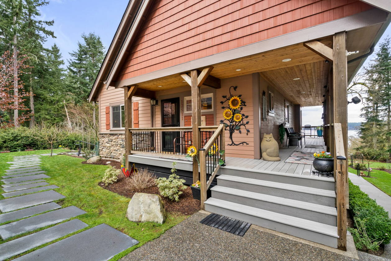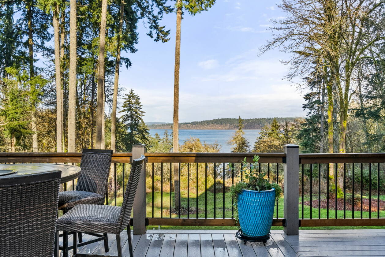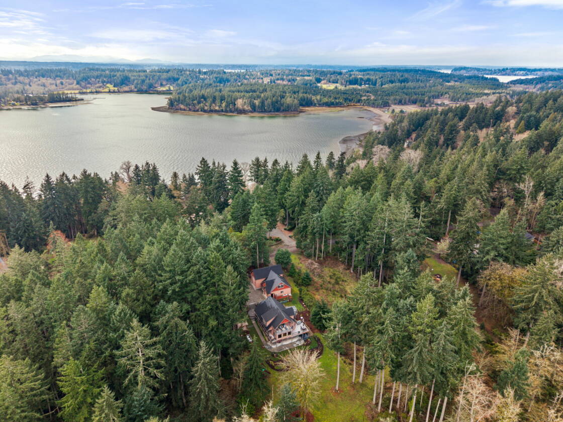 Perched above the Puget Sound, this beautifully crafted custom Anderson Island home offers refined living with sweeping Puget Sound views. The entertainer's kitchen features ample hickory cabinetry, granite countertops, Blanco sink plus high-end appliances which flows seamlessly into the great room with cozy fireplace. Steps away is a cedar sunroom & deck to capture stunning water views. Upstairs, the spacious primary suite includes a sitting area & ample deck for sunrise views, along with a luxurious en suite & large walk-in closet. The lower level offers 2 bedrooms, spacious bathroom, full kitchen & radiant heated floors, plus a separate entry with digital key code—ideal for multi-generational living or vacation rental potential. The property features a massive 2,000+ sq. ft. detached garage with 3 garage bays including a 40-ft RV bay. The fully insulated & heated garage includes a half bath & 400 sq. ft. upstairs flex space plus an on-demand generator for the home. Outside, enjoy a beautifully manicured yard with fruit trees, garden areas, & relaxing hot tub. Located near the local golf course & just 1 mile to the boat launch. This extraordinary property offers more than a home—it offers a lifestyle defined by quiet luxury & breathtaking views. A place where you arrive, exhale, & truly feel at home.