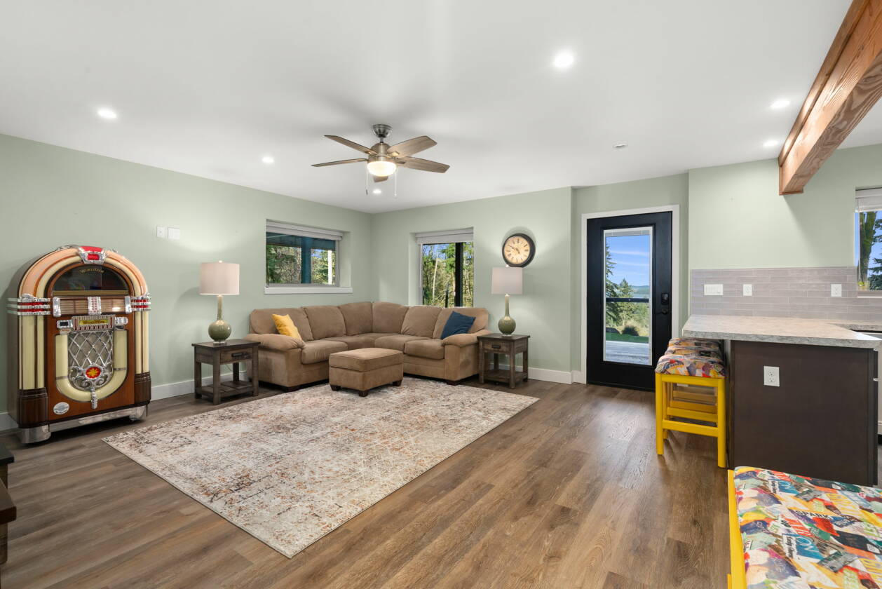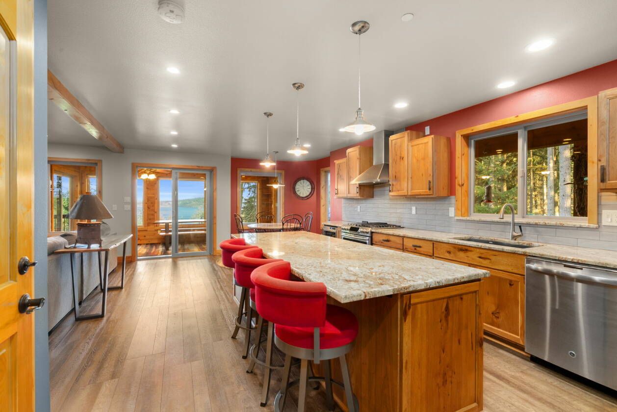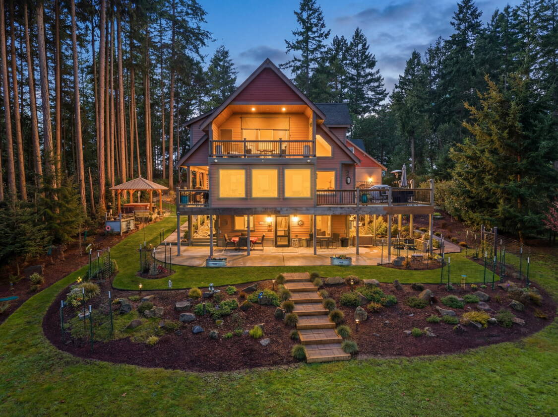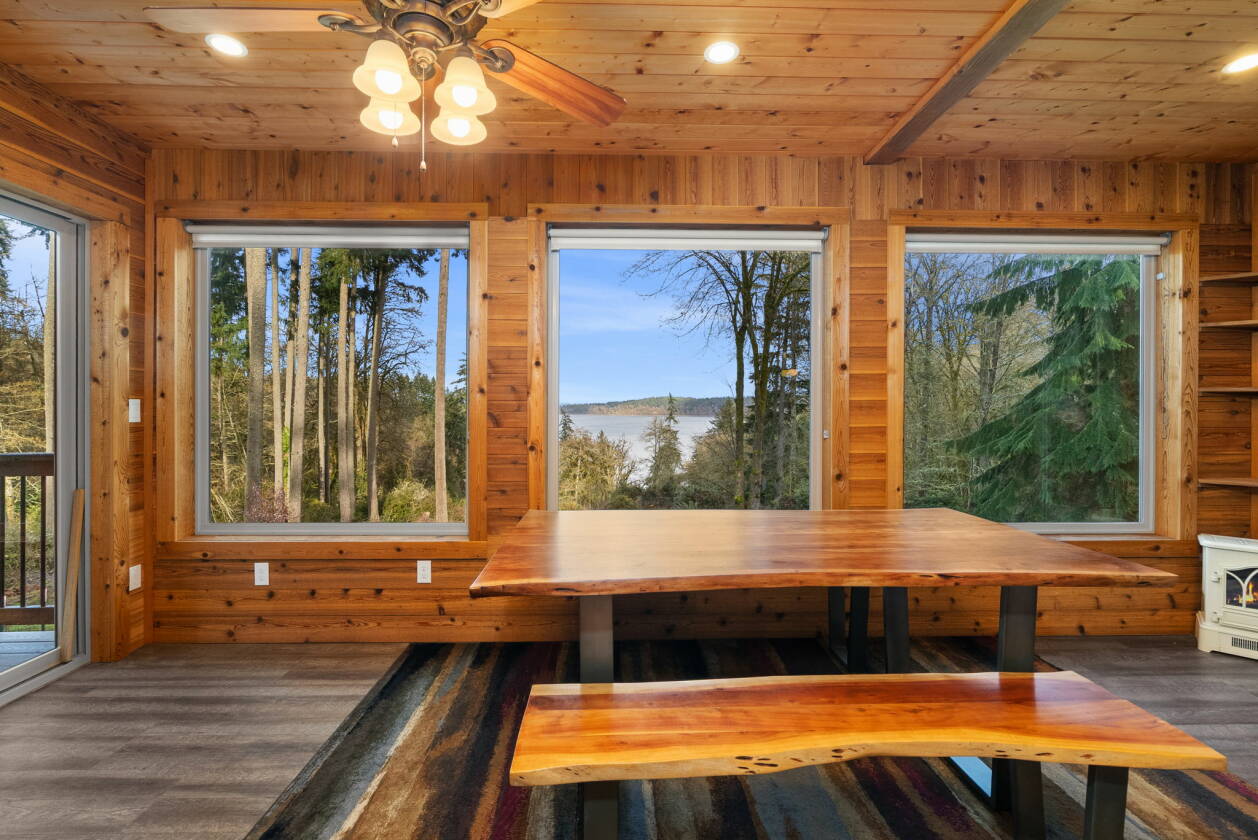 Perched above the Puget Sound, this beautifully crafted custom Anderson Island home offers refined living with sweeping Puget Sound views. The entertainer's kitchen features ample hickory cabinetry, granite countertops, Blanco sink plus high-end appliances which flows seamlessly into the great room with cozy fireplace. Steps away is a cedar sunroom & deck to capture stunning water views. Upstairs, the spacious primary suite includes a sitting area & ample deck for sunrise views, along with a luxurious en suite & large walk-in closet. The lower level offers 2 bedrooms, spacious bathroom, full kitchen & radiant heated floors, plus a separate entry with digital key code—ideal for multi-generational living or vacation rental potential. The property features a massive 2,000+ sq. ft. detached garage with 3 garage bays including a 40-ft RV bay. The fully insulated & heated garage includes a half bath & 400 sq. ft. upstairs flex space plus an on-demand generator for the home. Outside, enjoy a beautifully manicured yard with fruit trees, garden areas, & relaxing hot tub. Located near the local golf course & just 1 mile to the boat launch. This extraordinary property offers more than a home—it offers a lifestyle defined by quiet luxury & breathtaking views. A place where you arrive, exhale, & truly feel at home.